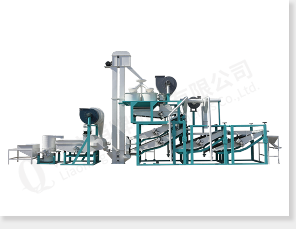 上料斗斗式提升機(jī) 脫殼、風(fēng)選、分選主機(jī) 籽仁復(fù)選機(jī)1 籽仁復(fù)選機(jī)2 風(fēng)力回料系統(tǒng) 接料斗 電氣控制柜